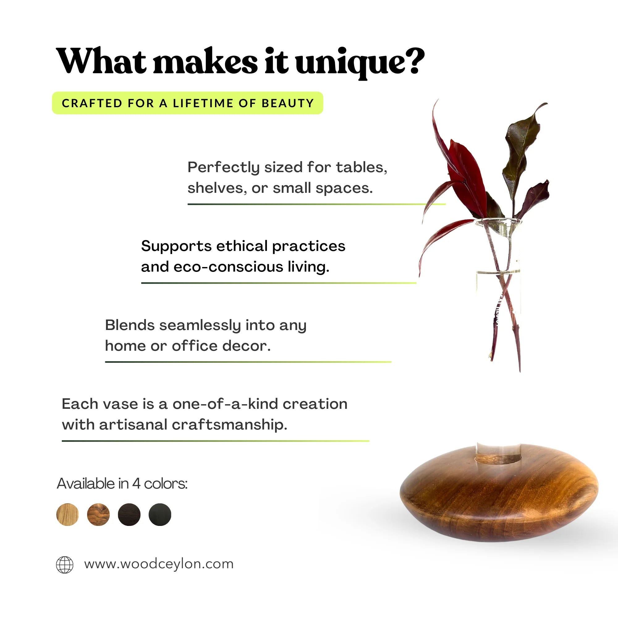 Wood Ceylon Pebble Shape Test Tube Vase with Glass Tube and Wooden Base for Elegant Floral Displays